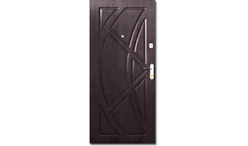 Двері броньовані Форт Вікінг. Розмір дверей 860*2050/розмір 960*2050 + 15009н Технічні характеристики: Дверний каркас: виготовлений із труби 60х40 і пофарбований порошковою фарбою. Товщина 1,5 мм. Дверне полотно товщина 70 мм, ребра жорсткості та лист металу завтовшки 1,2 мм, з двох боків обшите декоративними МДФ накладками завтовшки 10 мм Петли 2 шт. Наповнення полотна минвата Малюнок на дверцята з двох боків. Комплектація замків дверей: головний замок «Апекс» під серцевину ключ/ключ і додатковий сейфовий замок вгорі полотна «Титан». Ручка на дверях виробництва «Barerra» на планці. Глазок APECS — кут огляду 180°