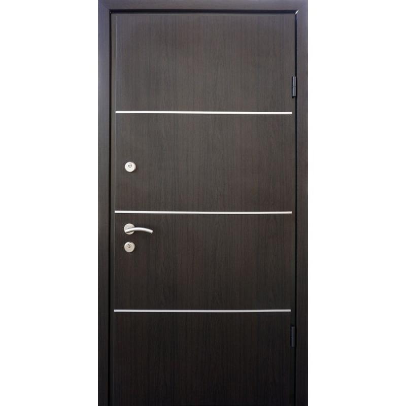 Двері вхідні Страж Парті D — це надійні сталеві вхідні двері для приватних будинків і котеджів Технічні характеристики: Сталева конструкція пофарбована високоміцною термостійкою порошковою фарбою за темп. 230 °C Коробка — стандартні двері 870х2050/ 970х2050 мм, гнутий профіль 130 мм, товщина 1,8 мм, утеплена мінутою, з терморозривом. Поріг з неіржавкої стали. Посилена відповідна планка замкових ригелів 5 мм Петли ― конусні 3 шт. діаметром 22х100 мм, зовнішнє відкриття 180° Полотно ― завтовшки 95 мм, сталевий лист 1,8 мм, силовий каркас із вертикальними та горизонтальними ребрами жорсткості, антизрізи 4 шт. діаметром 16 мм, дВійна контур гумового ущільнення, наповнення мінута. Терморозрив. Захисна марганцева пластина Hardox 3 мм біля замків, від висвердлювання Зовнішнє декоративне оздоблення: сендвіч панель 20 мм з оцинкованої сталі 1 мм і стереодура (Екструдований пінополістирол SYMMER — XPS (p42kg/m3) покритий зовнішньою плівкою "Vinorit" Внутрішнє оздоблення: плита HLS з покриттям VINORIT 12 мм Верхній замок ― сейфовий Mul-t-Lock Dead Lock 352К (Israel) Нижній замок ― під сердечник Mul-t-lock Sash Lock 354M (неварод), циліндр Fuaro 90 - 5+2 ключів Ручка на розетці Fuaro, Броненакладка - Kale (Turkey)