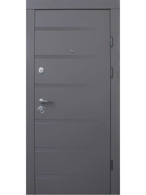 Двери Qdoors Роял Премиум смоки софт снаружи / лате софт внутри Стандартная дверь 850*2040 / размер 950*2040 Технические характеристики: Дверной каркас: толщина 115мм, изготовлен из трубы 60/40+55/60 и покрашен порошковой краской. Толщина 1.5 мм. Два контура уплотнения. Дверное полотно толщина 85мм, ребра жесткости и лист метала толщиной 1,5 мм, с двух сторон обшито декоративными МДФ накладками толщиной 16мм снаружи и внутри, торец двери заклеен под цвет панелей. Петли - 3 шт. Антисрезы с петлевой стороны 2шт. Наполнение полотна минвата Комплектация замков двери: главный замок Kale 252 (цилиндровый), Kale 257 (верхний сувальдный) Ручка Ручка на розетке S.A.P. design (хром) Глазок - Sap 45 * 75