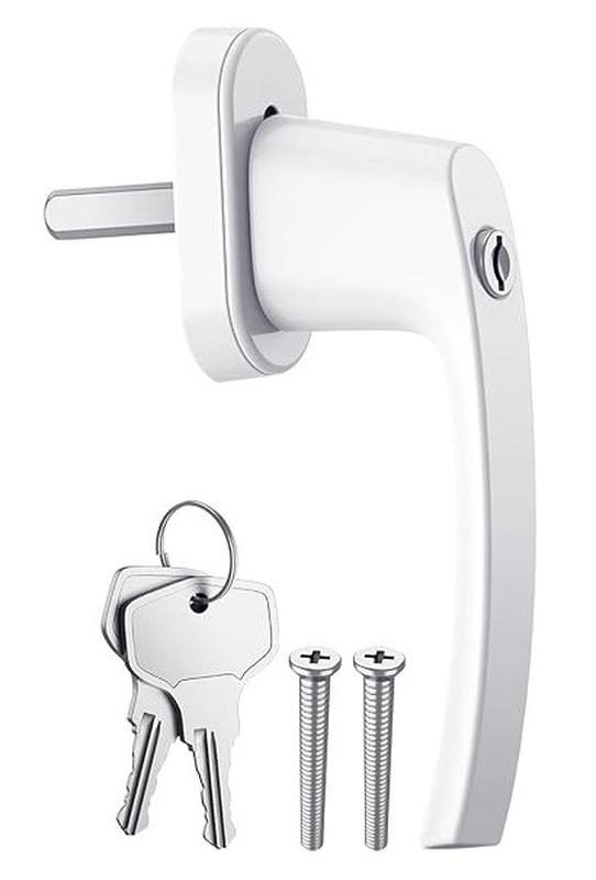 Добротная ручка Simbr HA-WJL-001 снабжена встроенным замком и может быть легко установлена вместо простой ручки в металлопластиковое окно или балконную дверь. Конечно же, подойдёт и для окон со стеклопакетом, которые имеют алюминиевый или деревянный профиль. Крепёж у ручки стандартный, подходит для всех оконных механизмов. Такие ручки можно использовать только изнутри комнаты, это не дверной уличный замок. Это защита от открытия окна извне или, к примеру, ребёнком в доме. Ручка выполнена из алюминиевого сплава, весит 190 грамм. В комплект входит: - одна ручка белого цвета со встроенным замком, - два ключа к замку, - два крепёжных винта длиной 40 мм.