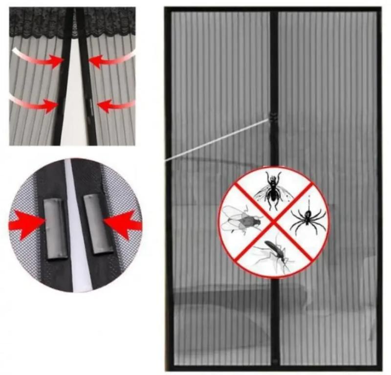 Антимоскитная сетка на магнитах magic mesh! Москитная сетка на магнитах - мечта любого дачника, теперь доступна каждому отечественному покупателю! Простое, практичное, и вместе с тем гениальное изобретение, являющееся непреодолимым барьером, отделяющим комфортный быт от назойливых насекомых. Принцип работы такой сетки очень прост. Антимоскитная сетка на магнитах охватывает всю площадь дверного проема, исключая, тем самым возможность проникновения самых мелких тварей в ваш дом. При этом, вы можете легко проходить через неё. Распашные половинки сетки, под весом магнитов быстро возвращаются на место и закрывают проход. Стоит сказать, что магнитные шторы не портят интерьер помещения, так как их структура светопроницаема. Физические размеры шторы magic mesh позволяют успешно монтировать изделие на 99% всех дверных проемов. Теперь ваш дом - глухая, непреступная крепость для насекомых. Наслаждайтесь летней прохладой, без необходимости закрывать входные двери. Монтаж сетки не потребует от вас специальных знаний и навыков, только нескольких минут свободного времени. • Летний вечер готов подарить вам прохладу. Вы хотели бы проветрить свои комнаты, не имея при этом проблем от надоедливых и жужжащих комаров? Наша магнитная шторка поможет обеспечить доступ свежего воздуха, и ни один комар не побеспокоит вас! Спокойно откройте балконную дверь, беспрепятственно выходите и входите на балкон, не беспокоясь о том, что очередной «кровосос» проникнет в жилище. • Теперь, при необходимости, вы сможете сколько угодно выходить на балкон не беспокоясь о том, что дверь осталась открытой. • Наша магнитная штора magic mesh станет незаменимым помощником при ночевках на даче. Вы будете наслаждаться свежим воздухом, совершенно не беспокоясь о возможности возникновения укусов кровососущих насекомых. • Дверь дачного домика или балконная дверь, вход на лоджии. Все они теперь будут надежной преградой на пути надоедливых комаров и мошек, если уже есть противомоскитная magic mesh! Главной конструкционной особенностью шторы являются комплексы магнитов, которые моментально притягиваются друг к другу, выставляя надежный заслон на пути злобных комаров, жаждущих вас искусать. Особенности: Ручки легко открываются, а затем автоматически закрываются за вами! Устанавливается в секундах и не требуется никаких инструментов, остается на протяжении всего сезона. Складывается для удобства хранения. Сохраняет ваши двери открытыми Высота сетки 210 см, ширина одной створки 50,8 см. В комплекте две створки, 24 магнита, кнопки для крепления. Цвет : Черный, коричневый, розовый, голубой, фиолетовый.