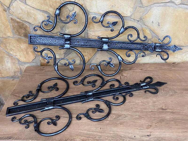 Ищете необычные дверные петли? Эта пара двух больших декоративных (фальш) воротных петель, выполненных в технике художественной ковки, прекрасно подойдет! Размер: длина: 89 см высота: 46 см Цвет: черный покрытый серебряной патиной. Винты для крепления не входят в комплект. Цена указана за пару из двух петель. Добавьте шарма своему дому! Обратите внимание, что принимаются индивидуальные заказы (другой цвет, размер, содержимое). Кроме того, данную ручку можно персонализировать (добавить гравировку).