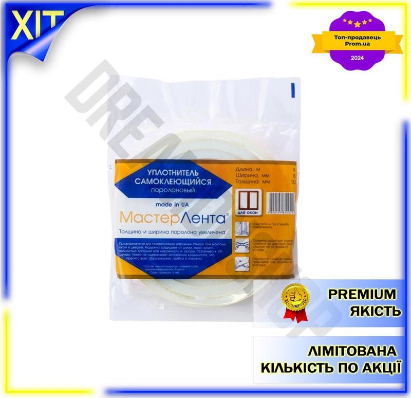 Dm ущільнювач поролоновий prc специфікація 2.2 10 х 8 мм 9 м для вікон самоклейка spe|lz