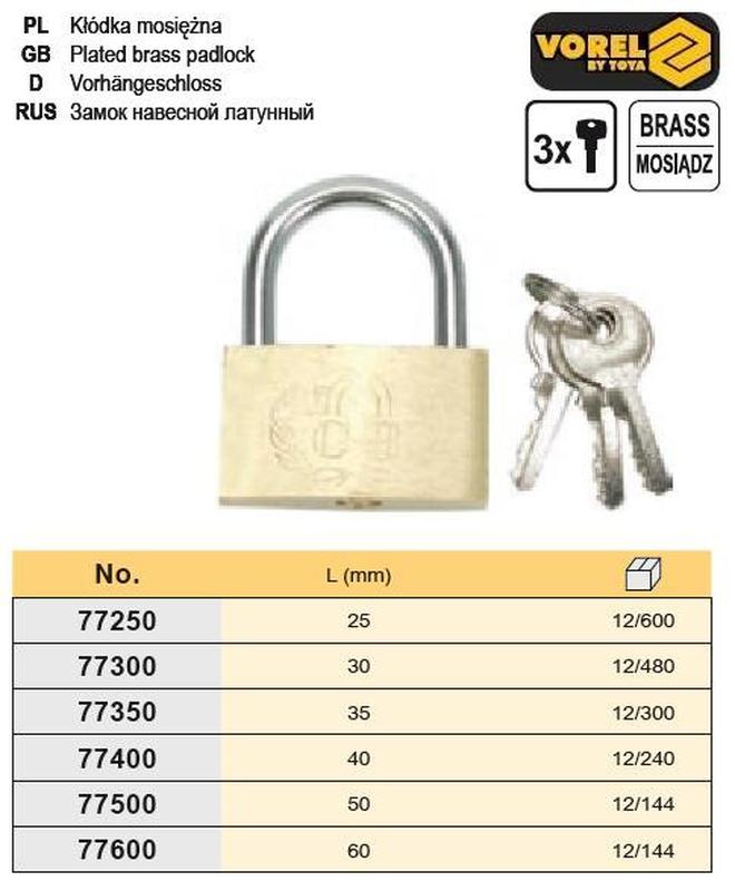 Замок навесной польша дуговой латунь l=40 мм vorel-77400