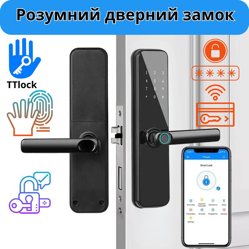 Смарт замок кодовый умный дверной khs-n8 с отпечатком пальца и ключ-картой ,черный