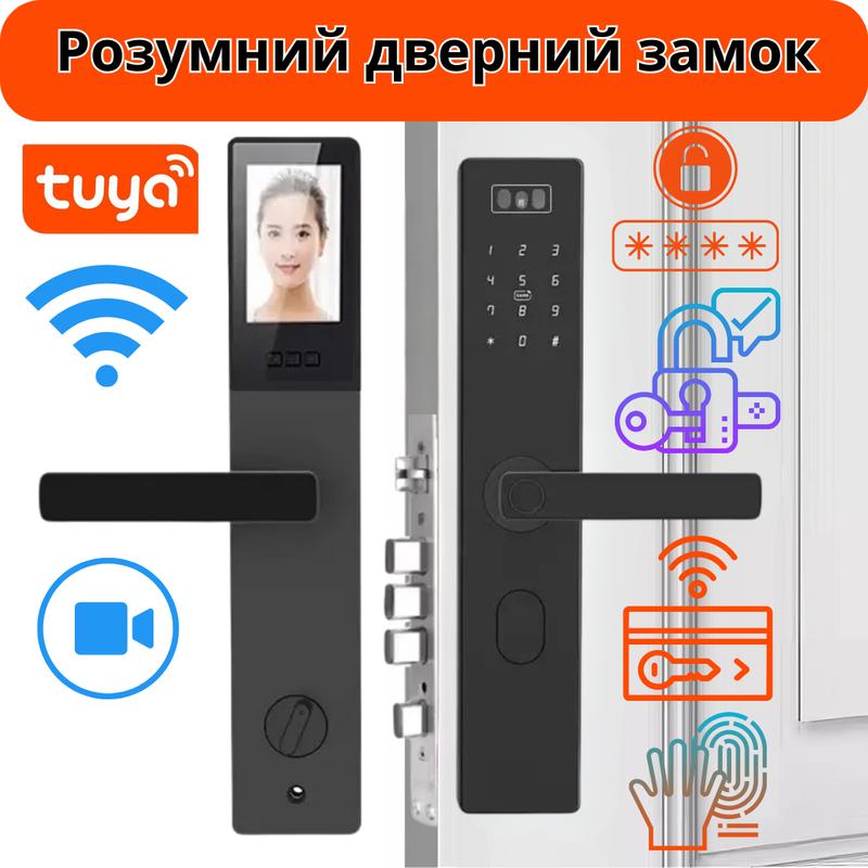 Смарт замок кодовый умный дверной с дисплеем khs-d10f с разблокировкой по лицу, отпечатком...