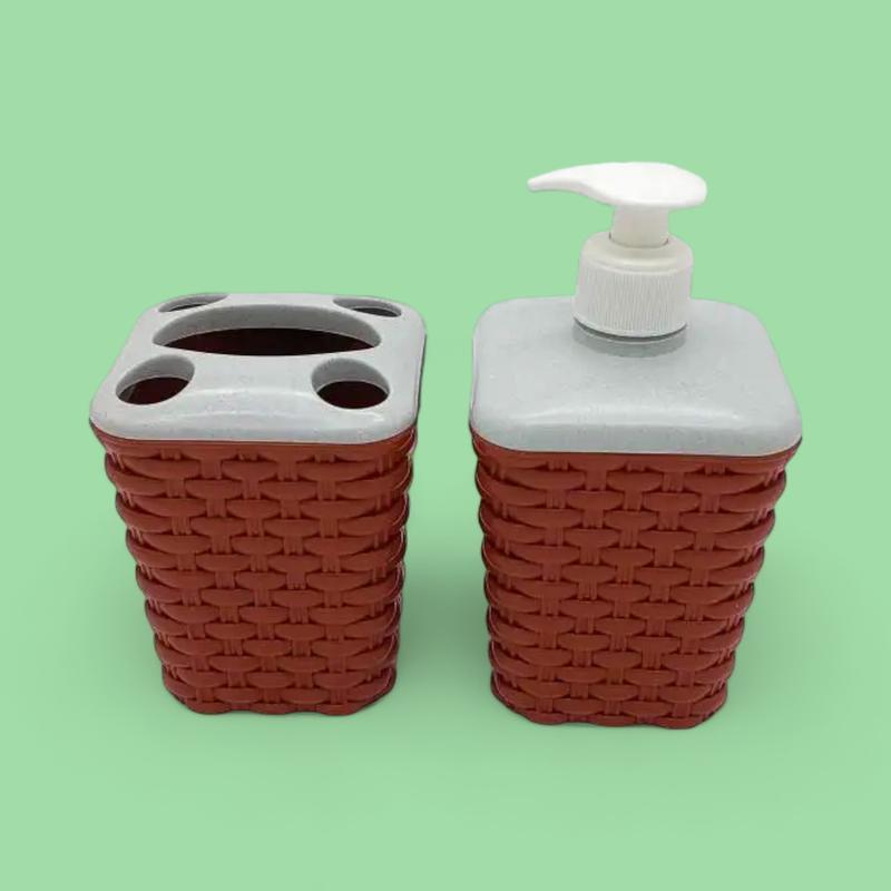Набор аксессуаров для ванной комнаты пластиковый Дозатор для жидкого мыла и стакан подставка для зубных щеток. Доставка во все регионы Украины.