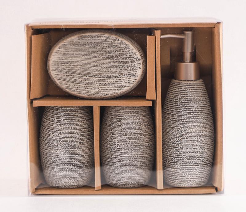 Набор керамических аксессуаров для ванной комнаты – это стильный и практичный выбор для оформления вашей ванной комнаты. Этот набор включает в себя несколько элементов, которые идеально сочетают в себе качество и дизайн. В наборе включено: Дозатор для мыла: Керамический дозатор удобен в использовании и придает элегантный акцент к вашему ванному помещению. Мыльница: Компактная и красивая керамическая мыльница, которая придает шарму и ухоженности вашей ванной. 2 стакана: Два стильных стакана обеспечивают удобное и организованное хранение зубных щеток, зубной пасты или других аксессуаров для гигиены. Бежевый цвет набора придает нотку естественности и спокойствию вашему ванному интерьеру, и отлично сочетается с разными стилями декора. Керамические аксессуары отличаются высокой прочностью и долговечностью, что делает их идеальным выбором для повседневного использования. Этот набор не только придаст функциональность вашей ванной комнате, но и сделает ее более нарядной и удобной для вас и гостей.