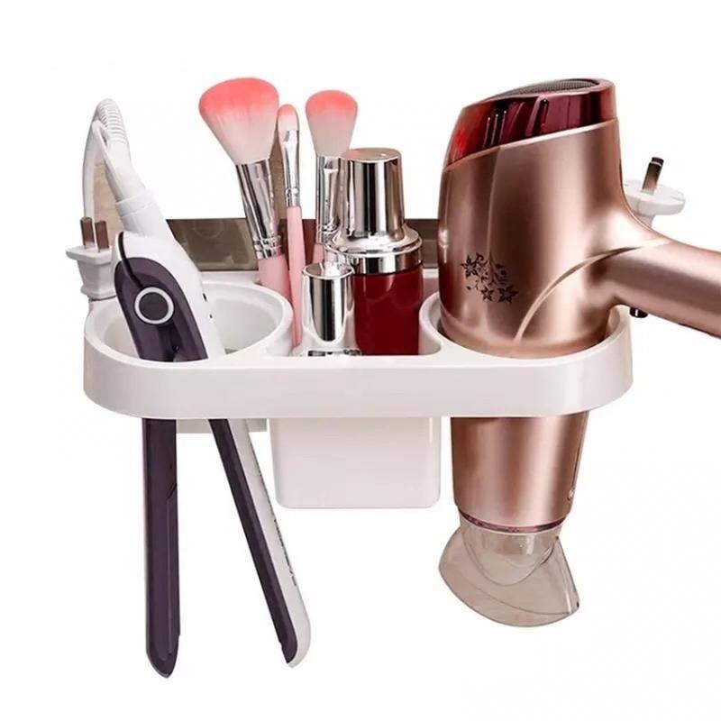 Держатель для фена в ванную комнату Многофункциональный держатель для ванной комнаты. Упростит хранение фена и утюжка, также есть отделение, где можно разместить что угодно: расчески, шампунь, кисти и косметику, заколки. Теперь все необходимое для укладки волос и создания прически будет в одном органайзере. Его легко закрепить, в комплекте есть все необходимое. Характеристики: Материал: пластик Цвет: белый Размер: 26х11.5х9.2 см Упаковка: коробка Крепление: самоклеющаяся лента Комплектация: держатель для фена Страна-производитель: Китай