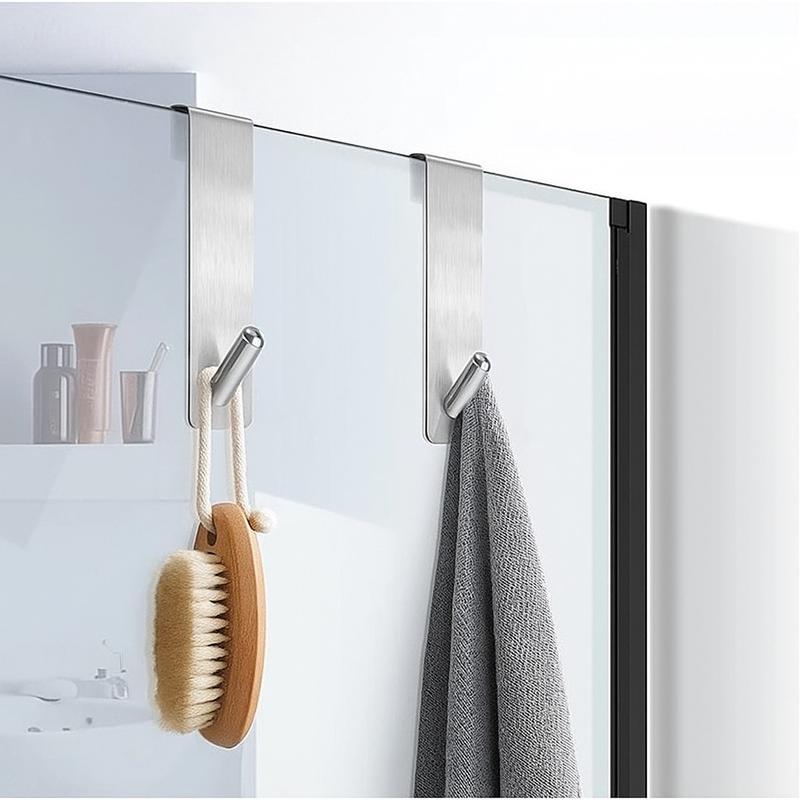 Крючок для душевой перегородки из нержавеющей стали, навесной на стекло -- вешалка для полотенец и халатов (2 шт) Описание: Практичный и стильный крючок из нержавеющей стали для ванной комнаты. Устанавливается без сверления -- просто навешивается на стеклянную дверь душевой кабины. Идеально подходит для хранения полотенец, халатов или щёток прямо в зоне душа. Благодаря высококачественному материалу не ржавеет и не царапает стекло и корпус двери. Преимущества: - Легкий монтаж без повреждения поверхности -- не нужно сверлить или клеить - Изготовлен из прочной нержавеющей стали -- устойчив к коррозии и влаге - Универсальная форма подходит для большинства стандартных стеклянных дверей - Позволяет аккуратно и удобно хранить полотенца, халаты, аксессуары для душа - Компактный размер -- не занимает много места и легко снимается для чистки Характеристики: - Материал: нержавеющая сталь - Размер: 17.8 см (длина крючка) - Количество в комплекте: 2 крючка - Цвет: серебро - Тип установки: навесной на стеклянную дверь без сверления - Подходит для стеклянных дверей толщиной до 12 мм Комплектация: - 2 × Крючок для душевой двери Рекомендации по использованию: Просто навесьте крючок сверху стеклянной двери -- удобно для хранения полотенец, халатов и других аксессуаров в ванной комнате.