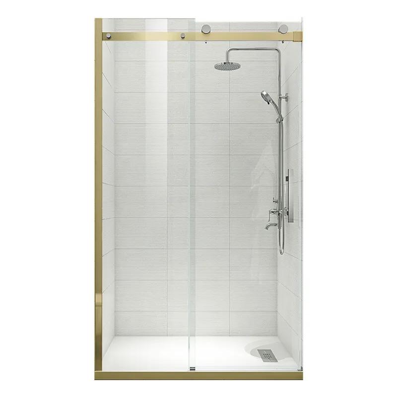 Дверь в нишу koer sr sd01-120x200-tr-12 прозрачное стекло easy clean 8мм, матовое золото (...