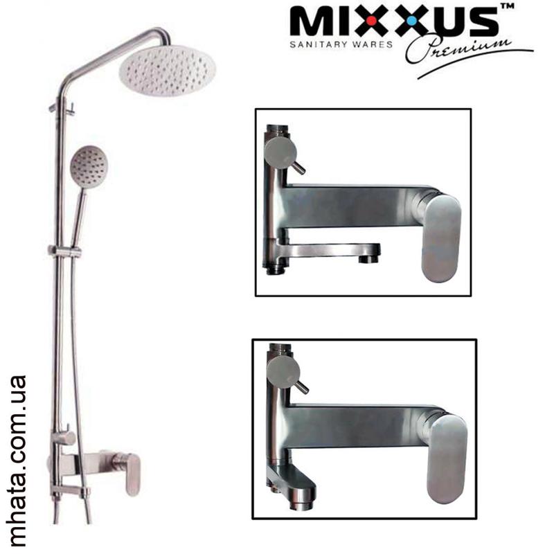 Душевая колонна — это смеситель, устанавливаемая на стену, укомплектованный верхним тропическим душем и шлангом с душевой лейкой. В состав душевой колонны включается верхний жёстко закреплённый душ обычно с душевой насадкой увеличенной площади, душ на гибком шланге, а также могут размещаться на вертикальной плоскости специальные форсунки. Переключение режимов формирования струй в них может осуществляться механически или при помощи электрически управляемых приводов. В системе может также использоваться термостат для регулировки температуры воды в струе. Преимущества душевых колон: - Небольшие габариты позволяют, компактное размещение; - Практичность и удобство, возможно регулировать высоту и наклон лейки; - Простота монтажа, возможно установить душевую стойку самому. - Душевая колонна в ванную комнату Mixxus RIO 009 J из нержавеющей стали марки AISI 304. Данная сталь имеет особые свойства: повышенная прочность, жаростойкость, устойчива к разнообразным химическим веществам. Используется AISI 304 в оборудовании для производства, хранения и транспортировки молока, пива, вина и других напитков, а также применяется в производстве кухонных и столовых принадлежностях! Душевая колона Mixxus из пищевой нержавеющей стали не содержит свинец, со временем не поддается коррозии. Смеситель имеет удобное трех позиционное переключение ("излив"-"лейка ручная"-"лейка тропическая"), данное переключение механическое и не зависит от давления воды, что очень надежно и удобно. Излив поворотный с длинной 19 см, картридж смесителя 35 мм с керамическими пластинами. Штанга в данной колоне перед установкой регулируется по высоте, максимум до 117 см, на штанге есть держатель ручной лейки, регулируемый по высоте и углом наклона. В комплекте лейка-ручная одно режимная, лейка- тропическая 200 мм одно режимная (мягкий дождь), шланг 1.5 м. Все аксессуары, а именно две лейки и шланг сделаны из нержавеющей стали, на лейках сопла резиновые для удобной очистки то извести. Душевая колона в ультра модном дизайне v долговечна и очень удобна в использовании, элегантно и супер стильно смотрится в ванной комнате, она впишется абсолютно в любой интерьер Вашей ванной комнаты. А также, что не мало важно, колона Mixxus RIO 009 J являются экологически чистым продуктом! Комплектация: - Смеситель - 1 шт - Лейка-ручная одно режимная - 1 шт - Лейка-потолочная одно режимная - 1 шт - Штанга вытяжная - 1 шт - Шланг для лейки - 1 шт - Держатель лейки - 1 шт - Крепление штанги - 1 шт - Чашки декоративные - 2 шт - Эксцентрики - 2 шт - Уплотнительные резинки - 2 шт Основные характеристики Производитель: Mixxus RIO 009j Комплектация: Держатель душа, полочка, лейка, штанга, излив Материал изделия: Нержавеющая сталь Страна производитель: Германия+Китай