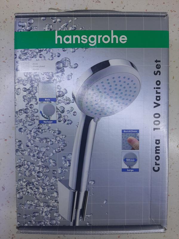 Новый набор для душа лучшего производителя Hansgrohe, Германия. 100% оригинал. Куплен в официальном магазине. Набор состоит из - ручной душ с 4 режимами, диаметром 100 мм Croma - шланг 1,6 метра с защитой от перекручивания Isiflex - крепление настенное Porter S хром