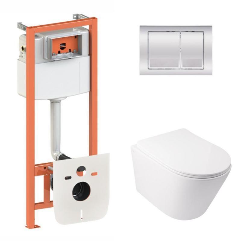 Комплект инсталляции q-tap nest/swan кнопка хром безободковый унитаз крышка микролифт qt16...