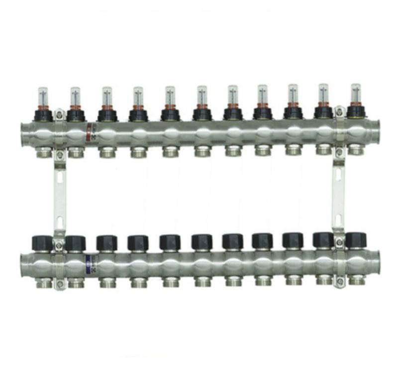 Коллектор нержавейка на 11 пар выходов "raftec" rc-03 для теплого пола с расходомерами