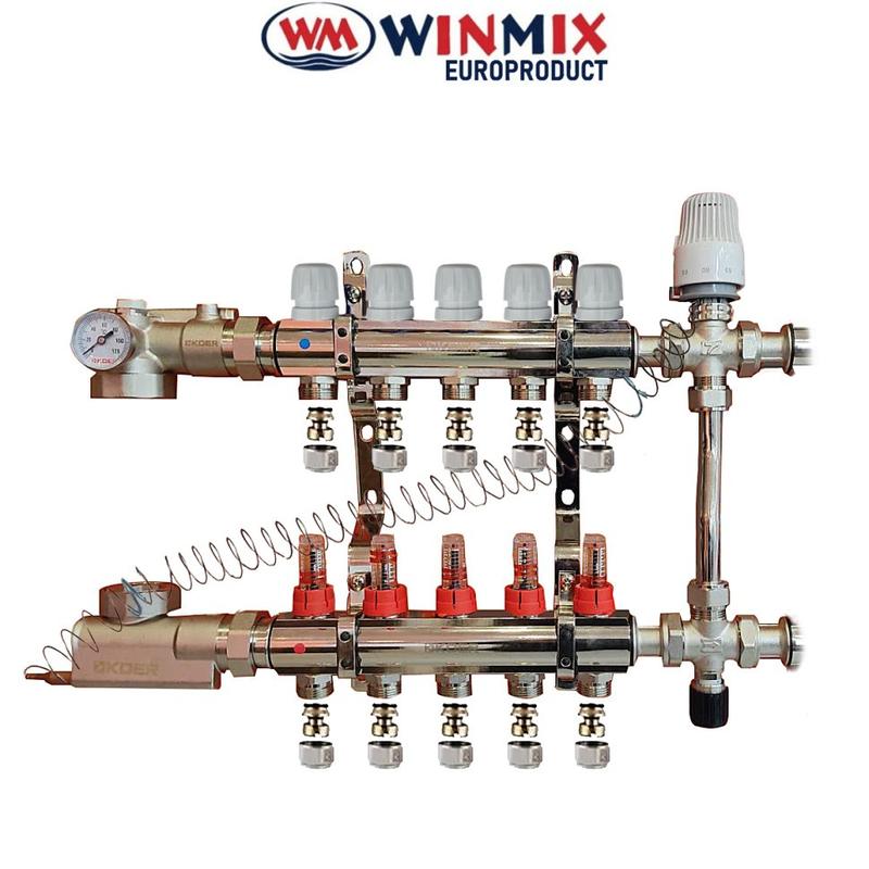 Коллекторный узел в сборе c 3-х ходовым клапаном для системы "теплый пол" winmix на 5 выхо...