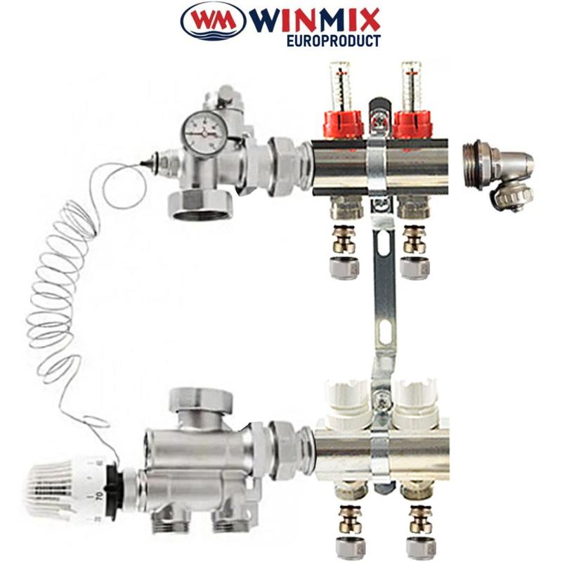 Коллекторный узел в сборе c нижним подключением для системы "теплый пол" winmix на 2 выход...