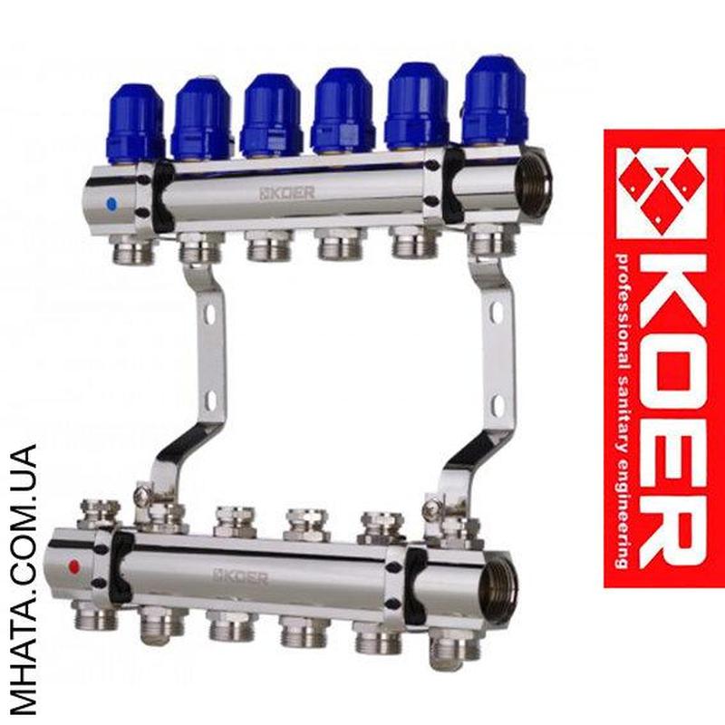 Коллектор для отопления koer на 6 выходов без расходомеров, отопление (без евроконусов) (ч...
