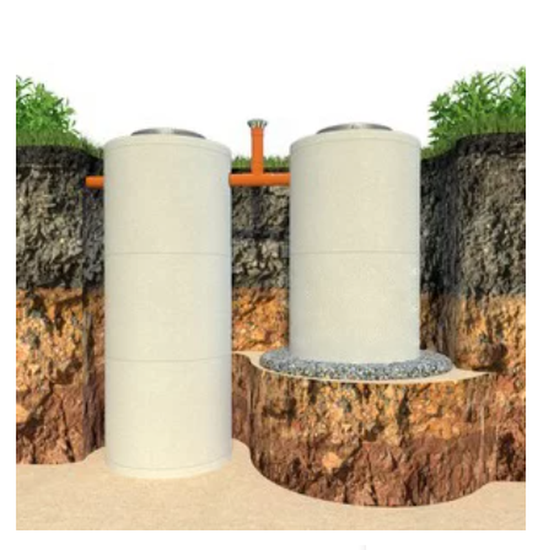 Виробник: Власне виробництво Спосіб очищення: Біологічний Кілька примірників у наявності Каналізація з бетонних кілець 3х2. Двокамерний септик 3х2 відмінно підійде для дачі або заміського будинку. Септик призначений для локального очищення стічних вод в приватному будинку з подальшим дренажем в грунт.В комплект мат-ів входить: Кільце наскрізне КС 10.9 паз - 2 шт Кільце з плитою перекриття ПК 10.9 паз - 2 шт Кільце з дном ДК 10.9 паз - 1 шт Люк полімерний - 2 шт Загальний обсяг 3.2 м3 Обслуговує осіб 4 Кількість колодязів 2
