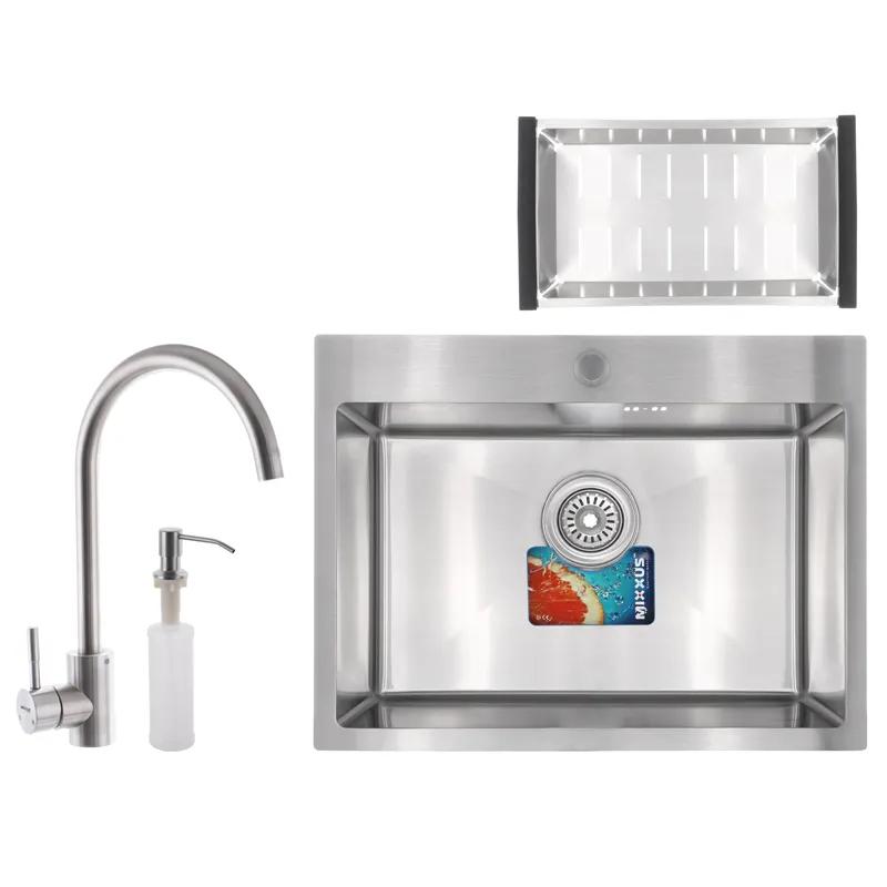 Набор Mixxus SET-6045-200x1.0-Satin (MX0584) представляет собой качественное решение для кухни, включающее в себя все необходимые элементы для установки и эксплуатации мойки