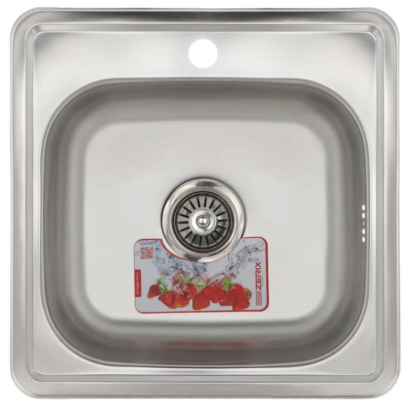 Кухонная мойка Zerix Z4848-06-160E Satin ZM0557 выполнена из нержавеющей стали с матовой поверхностью. Имеет квадратную форму и предназначена для врезной установки в столешницу. Размеры: 480×480 мм, глубина чаши -- 160 мм. В комплекте поставляется сифон, крепеж и уплотнительная лента. Мойка оснащена отверстием под смеситель