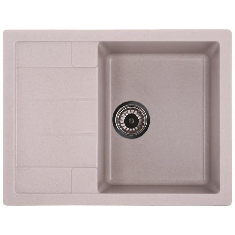 Zerix ZS-6550S-06 -- врезная кухонная мойка из прочного гранитного композита, размер********** мм. Оснащена одной чашей и крылом для сушки, подходит для установки в столешницу. Матовая бежевая поверхность устойчива к царапинам и температурам. В комплекте -- сифон и крепеж. Отверстие под смеситель необходимо сверлить самостоятельно