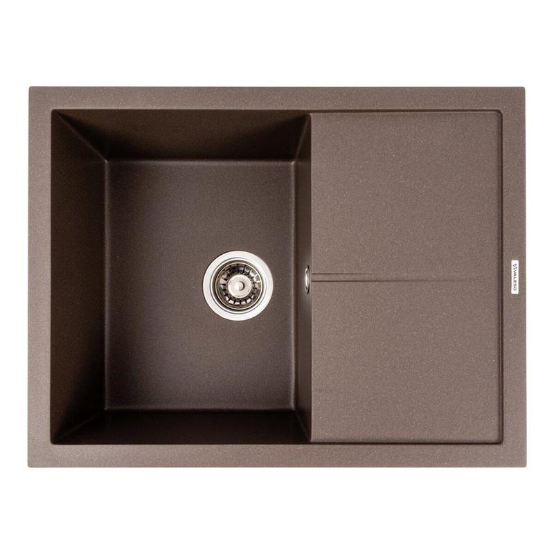 Гранитная мойка VALESO 6550 CRIPTA в цвете темная скала — это стильное и чрезвычайно прочное решение для современной кухни. Модель изготовлена из высококачественного искусственного камня с матовой поверхностью, что добавляет изделию элегантности, глубины цвета и повышенной устойчивости к ежедневному использованию. Мойка имеет оптимальные размеры: общий размер составляет 650×500×200 мм (ШхГхВ). Ее глубокая и просторная основная чаша размер********** мм (ШхГхВ) делает мытье посуды чрезвычайно удобным и эффективным, позволяя легко справляться с объемными предметами. Эта модель успешно сочетает компактные общие размеры для экономии кухонного пространства и достаточную емкость чаши для удовлетворения разнообразных потребностей. Базовая комплектация мойки не предусматривает предварительно сделанного отверстия под смеситель, что дает вам гибкость в выборе его расположения; отверстие может быть выполнено по вашему запросу. Крепления для установки мойки входят в комплект поставки, обеспечивая удобный и надежный монтаж. Гранитные мойки VALESO славятся своим идеальным сочетанием прочности, практичности и современного дизайна, что делает их отличным дополнением к любой кухне. Материал устойчив к царапинам, ударам, высоким температурам и воздействию агрессивных веществ, не впитывает запахи и легко чистится. Надежность и долговечность данной модели подтверждается гарантией производителя – 10 лет. Характеристики: - Бренд: VALESO - Модель: 6550 CRIPTA - Тип поверхности: Матова - Материал: Искусственный камень - Цвет: Темная скала - Размер мойки (ШхГхВ): 650×500×200 мм - Размер основной чаши (ШхГхВ): 340×435×200 мм - Отверстие под смеситель: По запросу (в базовой комплектации не предусмотрено) - Комплектация: Крепление - Гарантия: 10 лет