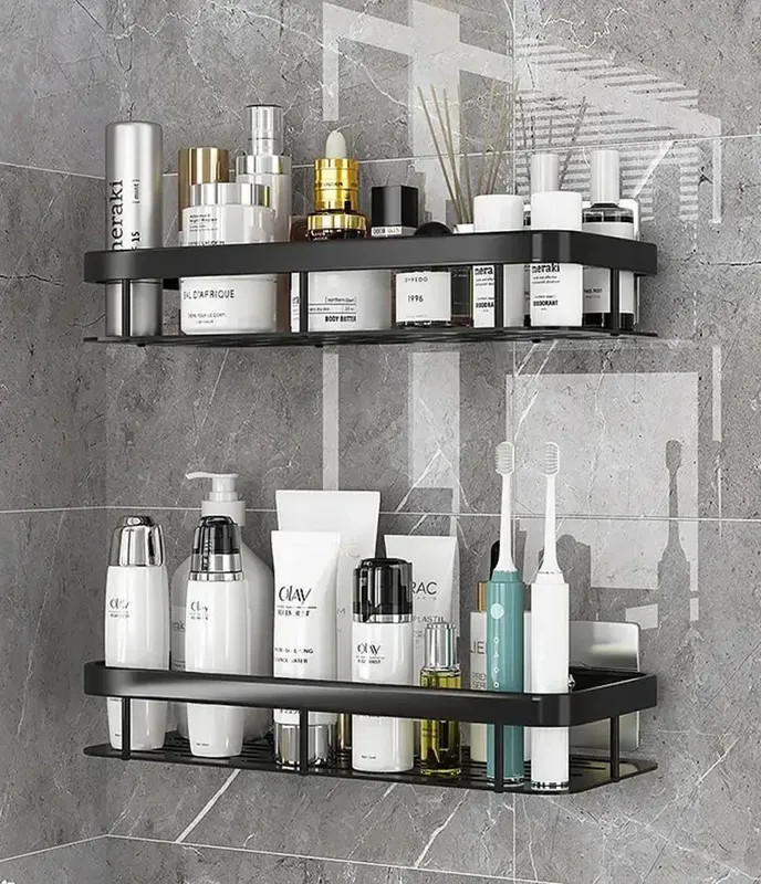 Настенная двухуровневая полка металлическая, самоклеящаяся для ванной комнаты, душевой