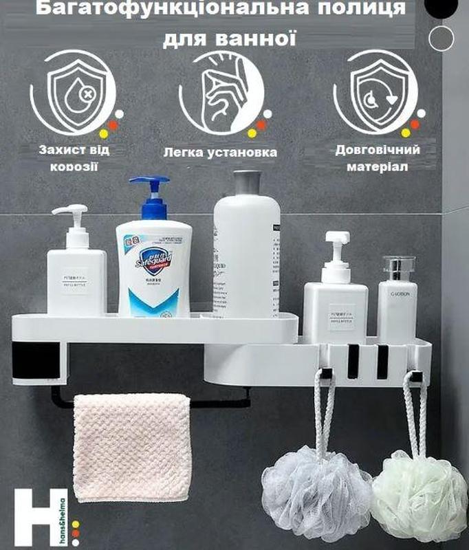 Поворотная угловая полка органайзер Ason XL-159 в ванную комнату, навесная полка для ванной Подвесная полочка с крючками для ванной комнаты. Практичный и симпатичный элемент декора. Стойка может поворачиваться на 180 градусов, без ограничения угла, а прямой угол может быть установлен по желанию. Дно полочек имеет полый резной дизайн, что препятствует накоплению воды и размножению бактерий. Эта полочка очень вместительная. Вы без труда разместите большие емкости гелей для душа и шампуней, эфирные масла, различные очищающие средства, лосьоны и многое другое. На краю стойки есть 4 крючка, которые можно использовать для подвешивания полотенец или мочалок, их также можно сложить и спрятать, когда они не используются. В стойку входит выдвигающаяся кассета, куда можно сложить ювелирные изделия, если вы не хотите, чтобы они промокли во время принятия ванны. Большое преимущество этой полочки, что она крепится на стену за счет липкой основы, Вам не придет сверлить стену. Достаточно выполнить следующие действия: Определите подходящее место для полки Очистите и вытрите стену досуха Удалите защитную пленку с клеевой поверхности и сильно прижмите ее к стене. Установите полку на специальные крепления. Перед использованием подождите 24 часа для лучшего эффекта. Характеристики: Материал: пластик Размер: 34 x 11 x 8 см Вес: 490 г