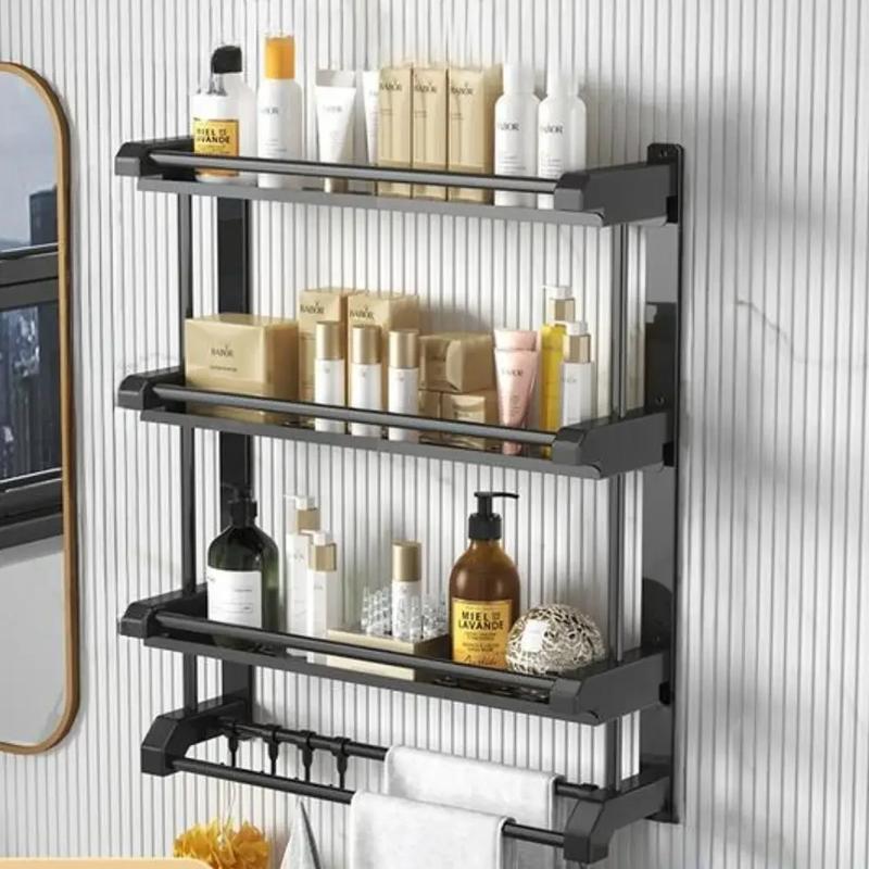 Подвесная настенная полка для ванной sklm-10, 3 уровня + крючки, чёрная