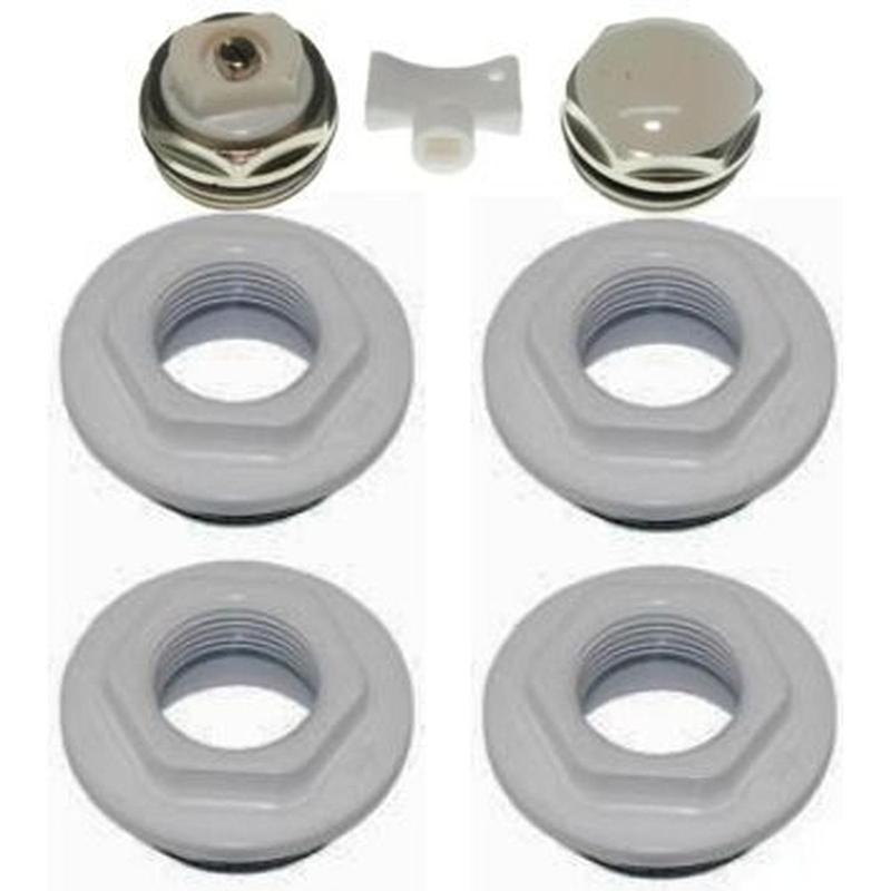 Комплект футорок универсальный 1/2″х1″ CRISTAL NR-2011 Предназначение: подключение секционных (алюминиевых/биметаллических) радиаторов к теплосети. Характеристики: • Цвет: белый (RAL9016) • Материал: стал, пластик • Максимальная рабочая температура: +110°С • Переходник (дюймы) - 1/2″ВРх1″НР • Размеры: ВхШхД 100х100х20мм • Максимальное рабочее давление: 32атм Комплектация: • Футорка (переходник) с левосторонней резьбой 1/2″ВРх1″НР- 2шт; • Футорка (переходник) с правосторонней резьбой 1/2″ВРх1″НР- 2шт; • Заглушка 1/2”НР- 1шт; • Ручной воздухоотводчик (кран Маевского) 1/2”НР- 1шт; • Ключ для ручного воздухоотводчика- 1шт; • Индивидуальная упаковка- 1шт