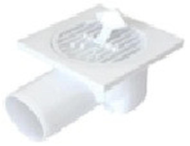 Трап угловой с отводом с пластиковой решеткой 10x10 см и с клапаном d50
