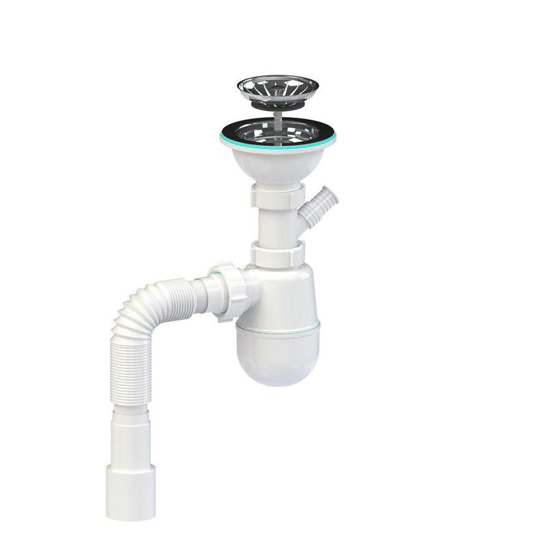 Сифон для кухонной мойки с переливом soloplast с отводом для техники к1140