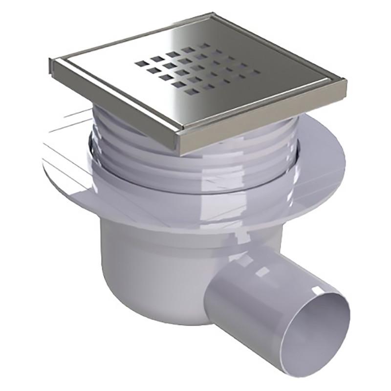 Трап решетка cubo, 106x106мм, d50, prevex, горизонтальный слив, пластик, нержавеющая сталь