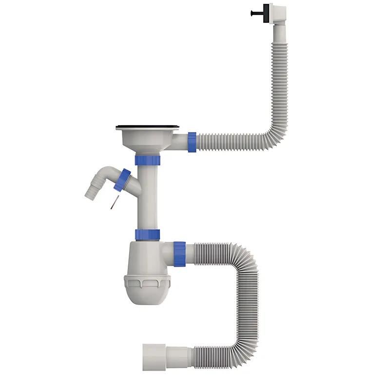 Сифон для кухни mixxus sk-05-bl 3 1/2"x40 с пластиковой сеткой, отводом для стиральной маш...