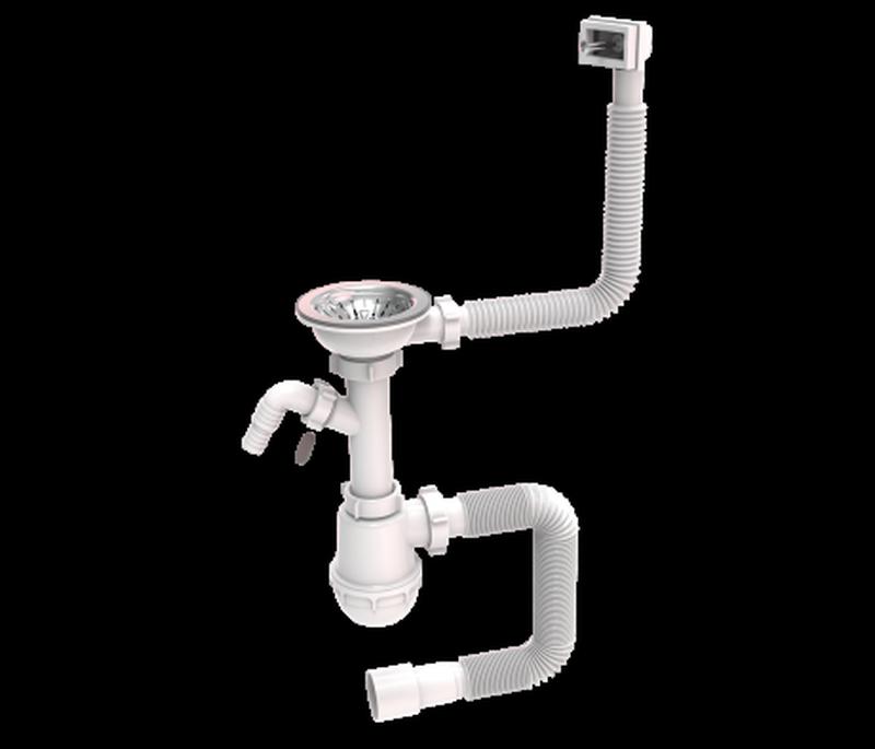 Сифон M-02.03.01 – це практичний і довговічний сантехнічний елемент для кухонного миття. Завдяки використанню якісних матеріалів, таких як поліпропілен і нержавіюча сталь, він стійкий до корозії та забезпечує надійне відведення води. Конструкція сифону передбачає зручне підключення до каналізації, а також можливість приєднання пральної або посудомийної машини. Простий у монтажі та обслуговуванні, він допоможе підтримувати чистоту та комфорт на кухні. \n Основні характеристики: - Зливна сітка з нержавіючої сталі Ø115 мм - Відвід для підключення пральної або посудомийної машини - Прямокутний перелив для запобігання переливу води - Гнучка труба 40х40/50 для зручного монтажу