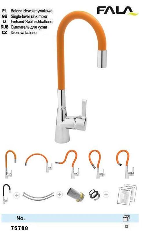 Смеситель воды для раковины flexible гибкая оранжевая лейка fala-75708