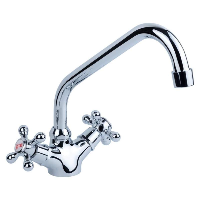 Змішувач VD ½" для кухні на гайці TAU 9870100 (VD-4B161C) Змішувач VD 1/2" для кухні на гайці TAU 9870100 (VD-4B161C) - Мінімальний тиск в системі водопостачання: 0.5 бар - Максимальний тиск в системі водопостачання: 10 бар - Водневий показник води (pH): 6.5–8.5 - Загальна мінералізація води: не більше 1500 г/м³ - Тільки для чистої води без домішок, що містять абразиви (пісок, глину, вапно тощо) VD-4B161C - це змішувач для кухні з поворотним зігнутим гусаком (винос 20 см) і двома вентилями хрестоподібної форми з заглушками, на які нанесені червоний і синій логотип TAU для позначення гарячої та холодної води. Такий кран підійде для мийок великих розмірів, виготовлених з нержавіючої сталі або керамограніта. Двохвентильний змішувач для кухні VD-4B161C монтують на горизонтальну площину і фіксують гайкою. Для підключення до магістралі в комплекті поставляються 2 гнучких підведення. Гарантія на виріб - 12 місяців. Артикул: VD-4B161C Торгова марка: TAU Покриття: Хромонікелеве Офіційна гарантія: Від виробника Маса нетто, кг: 0.800 Комплектація: Гнучкий підвід 1/2" × M10 × 350 мм — 2 шт Тип кріплення: Гайка Кран-букса: 1/2" латунна з керамічними дисками Матеріал змішувача: Латунь