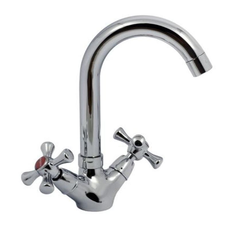 HB 274 Smes Смеситель для умывальника с поворотным полукруглым гусином. Буксы керамика. Крепление на шпильке. Материал Латунь Тип Двухручные Серия Smes Цвет Chrome Тип крепления Шпилька