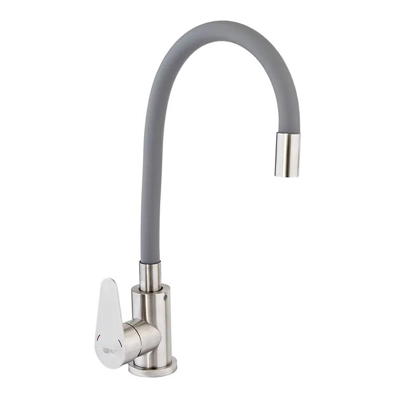 Змішувач для кухні із сірим гнучким виливом zerix x-011 rel.gra з нерж. сталі 304 (zx4834)...