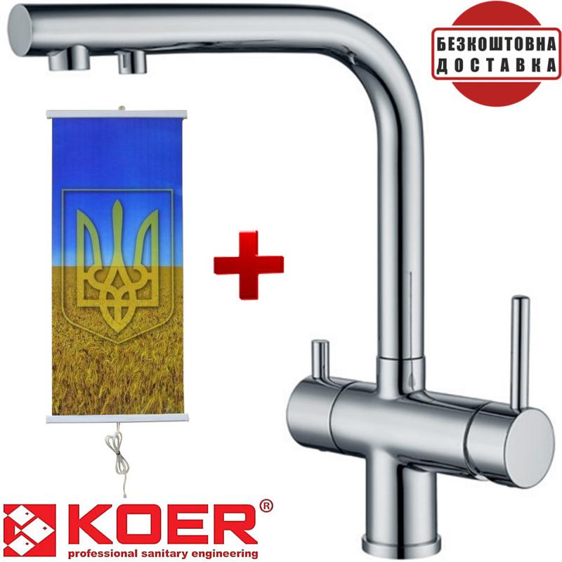 Смеситель для кухни с выходом под осмос koer kb-72001-01, чехия (цвет хром) + подарок карт...