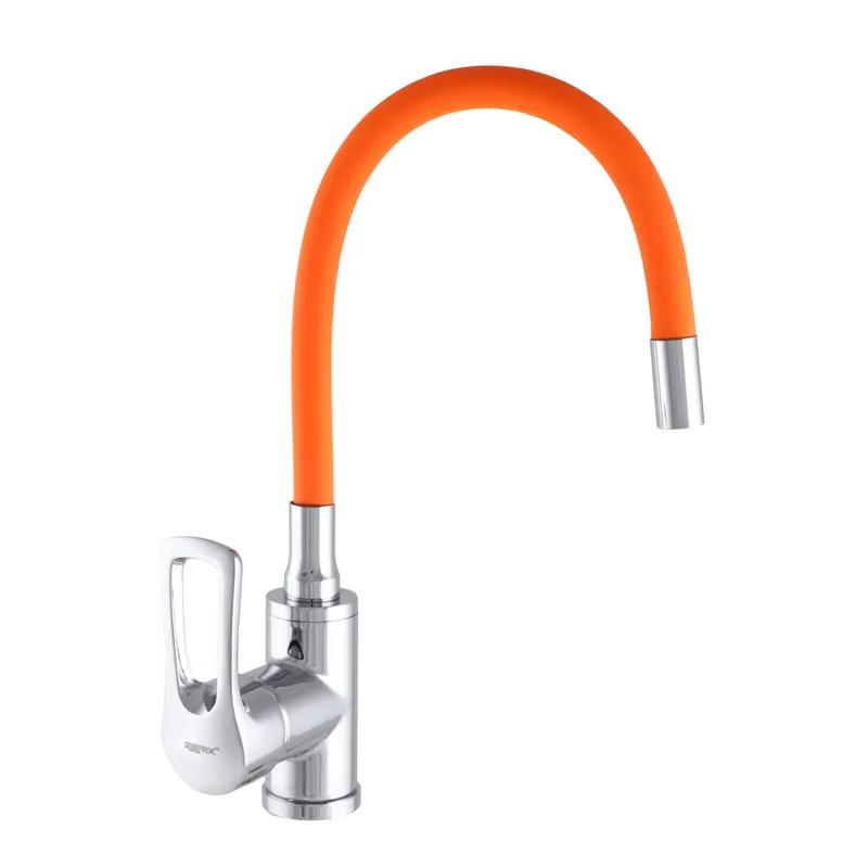 Змішувач для кухні zerix ar 181 з помаранчевим силіконовим виливом (zx2674) yousf