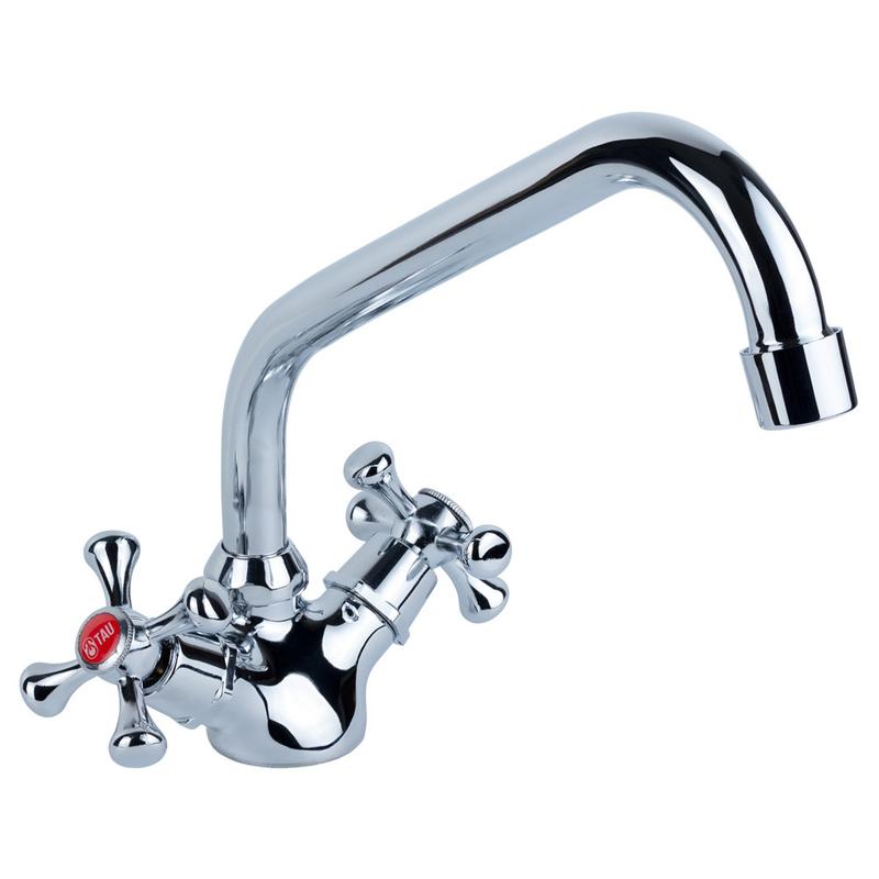 Смеситель tau vn-4b160c для кухни двухвентильный с вращающимся изливом для удобства мытья...