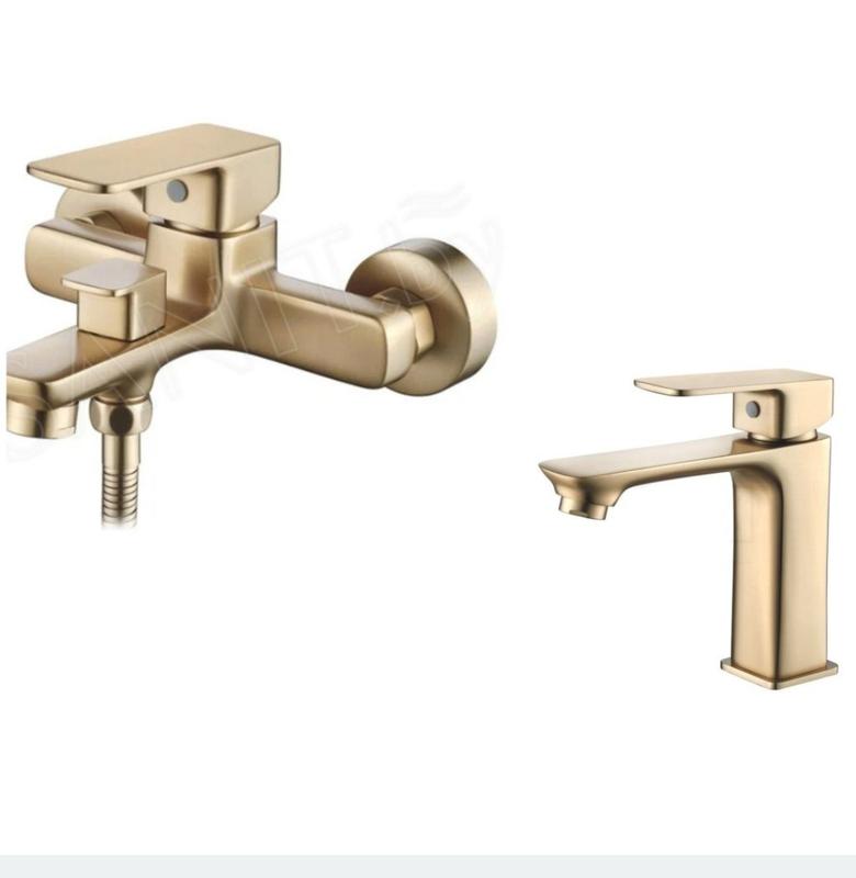 Набор смесителей ТМ ledeme состоит из смесителя для ванны и смесителя для умывальника. Материал корпуса латунь. Цвет матовое золото.