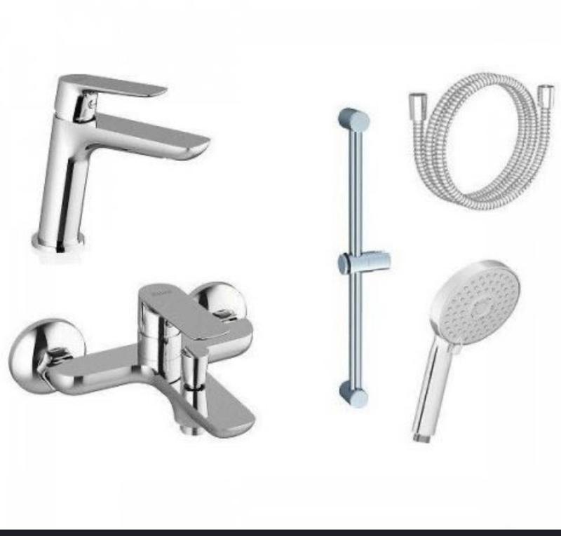 Набір змішувачів для ванної кімнати Ravak Classic 5 в 1. До комплекту входять змішувач для раковини, змішувач для ванни, душова штанга, душовий шланг і лійка. Виготовлені з високоякісної сталі, мають сучасний дизайн та надійну конструкцію.