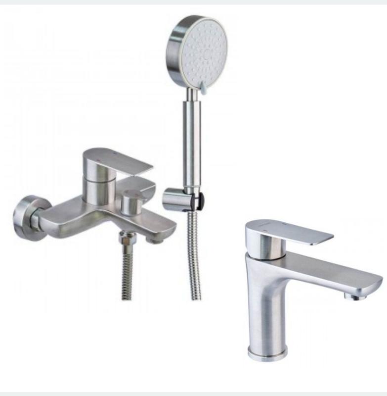 Набор смесителей mixxus состоит из смесителя для ванны и смесителя для умывальника. Материал корпуса нержавеющая сталь.