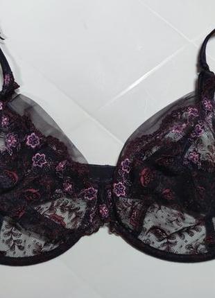 Невероятно шикарный прозрачный ажурный бюстгальтер с вышивкой marks & spencer 80f 85f 36f