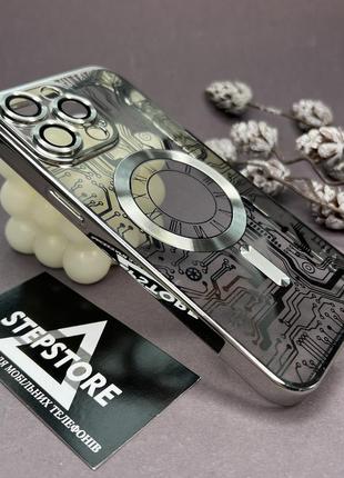 Чохол бампер для iphone 13 pro max magsafe матовий прозорий лінзи на камеру хромований обідок протиударний