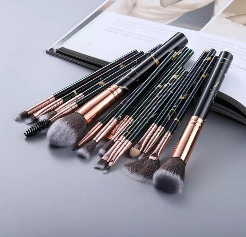 Набір мармурових пензликів для макіяжу 15 шт. (чорний)