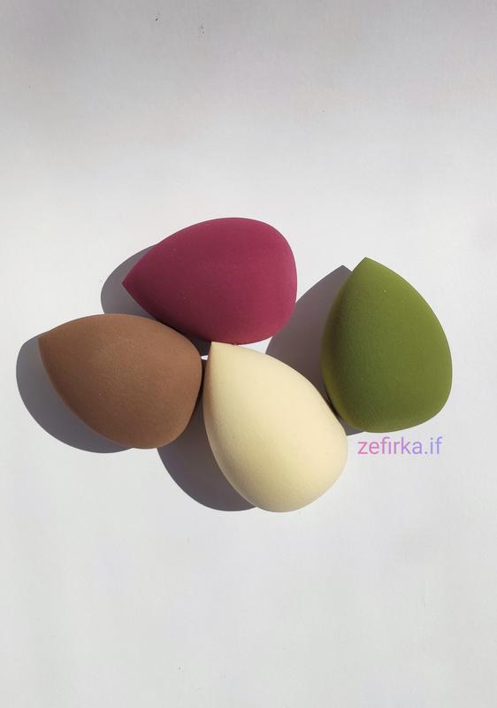 Спонж виготовляються з м'якого синтетичного матеріалу, який не містить латексу і не викликає алергію. Спонжики (Beautyblender) випускаються в різних кольорах і формах. Спонжики володіють більш м'якою текстурою, що підходить для найтоншого нанесення і чутливої шкіри. Форма спонжика дозволяє ідеально замаскувати недоліки на шкірі. Також його використовують для змішування декількох кольорів помад на губах. Загостреною стороною спонжика зручніше наносити консилер під очі або біля носа, а також прибирати надлишки макіяжу. Закругленою формою наносять основний шар тонального засобу постукуючими рухами. З допомогою спонжа для обличчя можна нанести ідеальний шар тонального крему, рум'яна, пудри або будь-якого іншого засобу. Для цього потрібно знати, як користуватися косметичною губкою правильно: - Перед використанням -- намочити. Ця правило діє для будь-якого спонжика. - Спонж повинен бути вологим, а не мокрим. Для цього, після того як його намочили, губку необхідно віджати і промочити в паперовій серветці. - Наносити тональний засіб потрібно легкими рухами, промокуючи шкіру. Ні в якому разі не можна втирати тональний крем в шкіру. Це негативно впливає на циркуляцію крові і розтягує шкіру. Бажано наносити тональний крем по масажних лініях обличчя. - Необхідно правильно доглядати за спонжем і під час його міняти. Перед накладанням макіяжу за допомогою спонжа, рекомендують занурити пристосування на кілька хвилин у гарячу воду, що дозволить видалити мікроби з її поверхні. Якщо бажаєте обрати конкретний колір, а не рандомний, то напишіть будь ласка про це примітках, коли оформляєте замовлення.